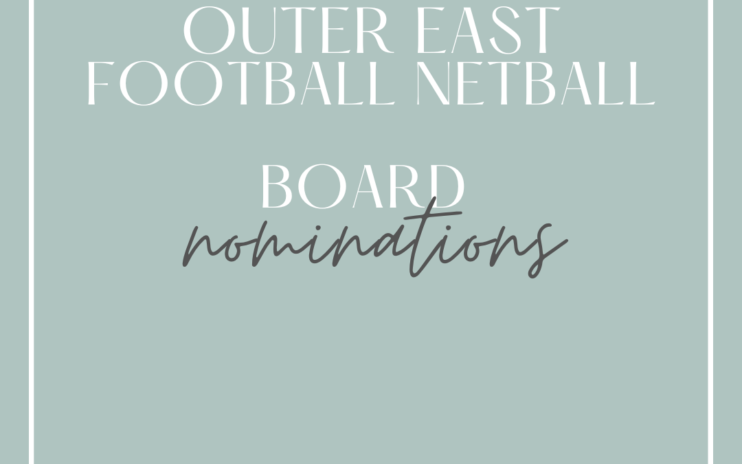 The Outer East Football Netball Board call for nominations to its board as per it’s constitution.